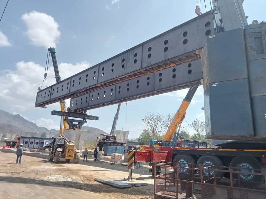 4. ประกอบเครน – ประกอบเครนหน้าไซต์งาน ตัวเครนจะมีการแยกส่วนต่างๆออกเพื่อให้ขนย้ายง่ายขึ้น